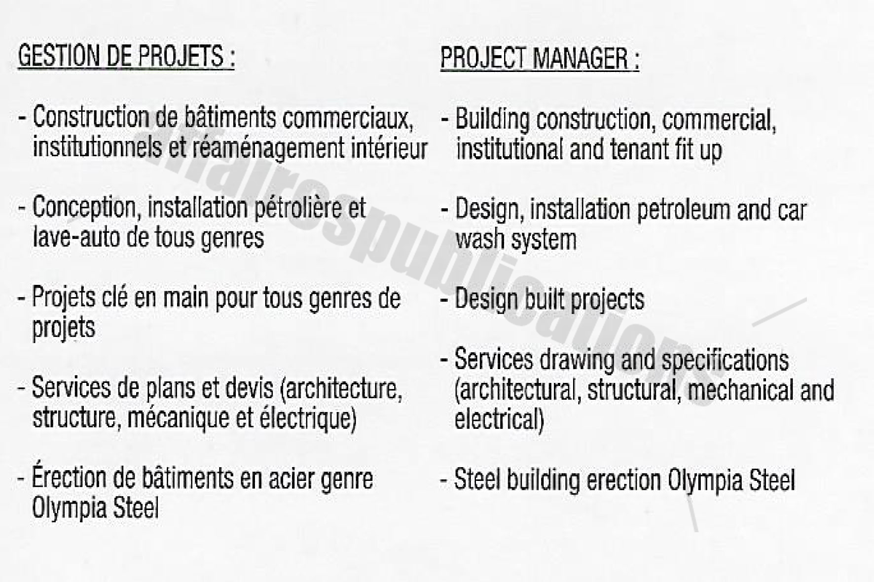 ENTREPRENEUR SPÉCIALISÉ EN :